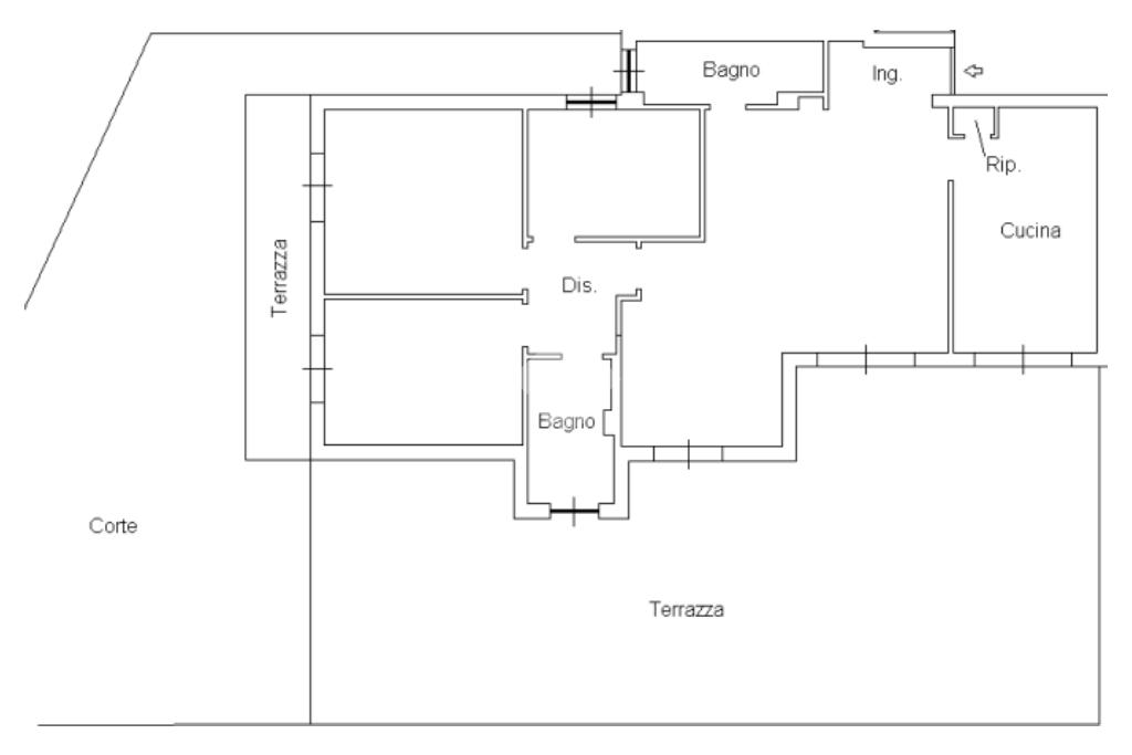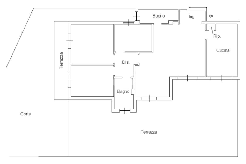 L’unità immobiliare si sviluppa su cinque locali ed è caratterizzata da una distribuzione funzionale degli spazi.