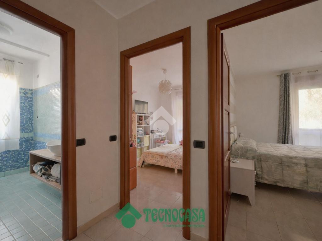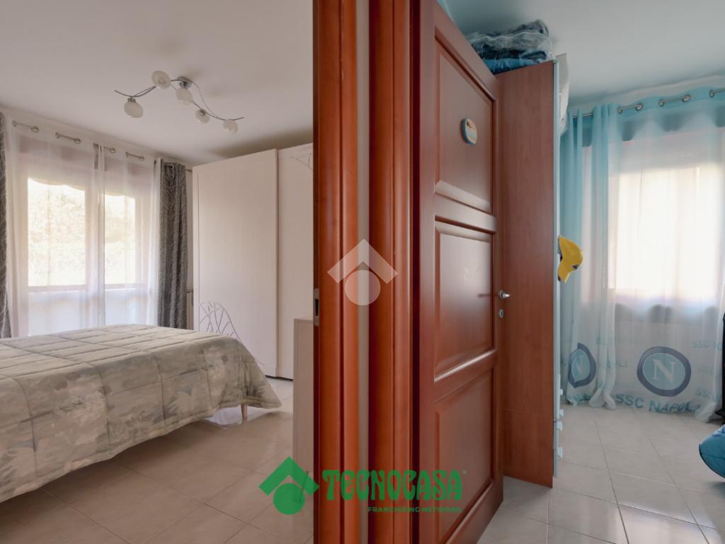 Due camere da letto affacciano sul lato posteriore dell’immobile e dispongono di balcone, dal quale si accede alla parte retrostante della corte, dove sono collocati i posti auto e da cui è presente l' ingresso indipendente della proprietà.