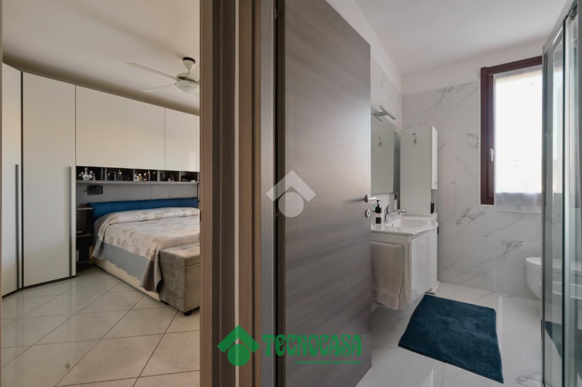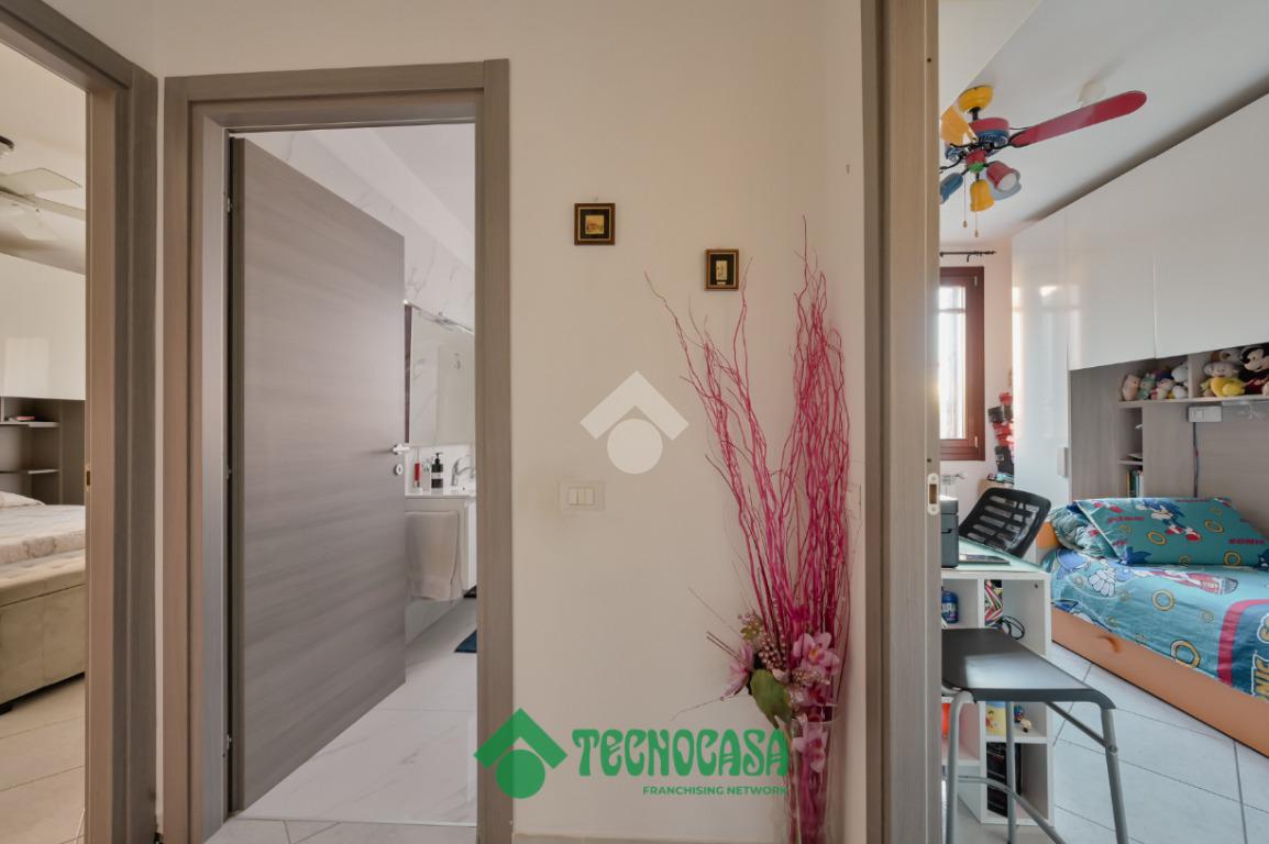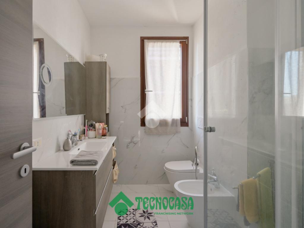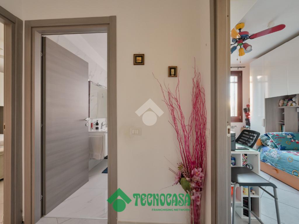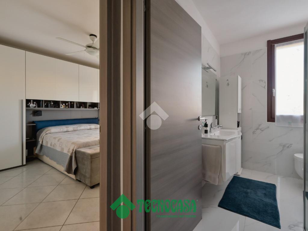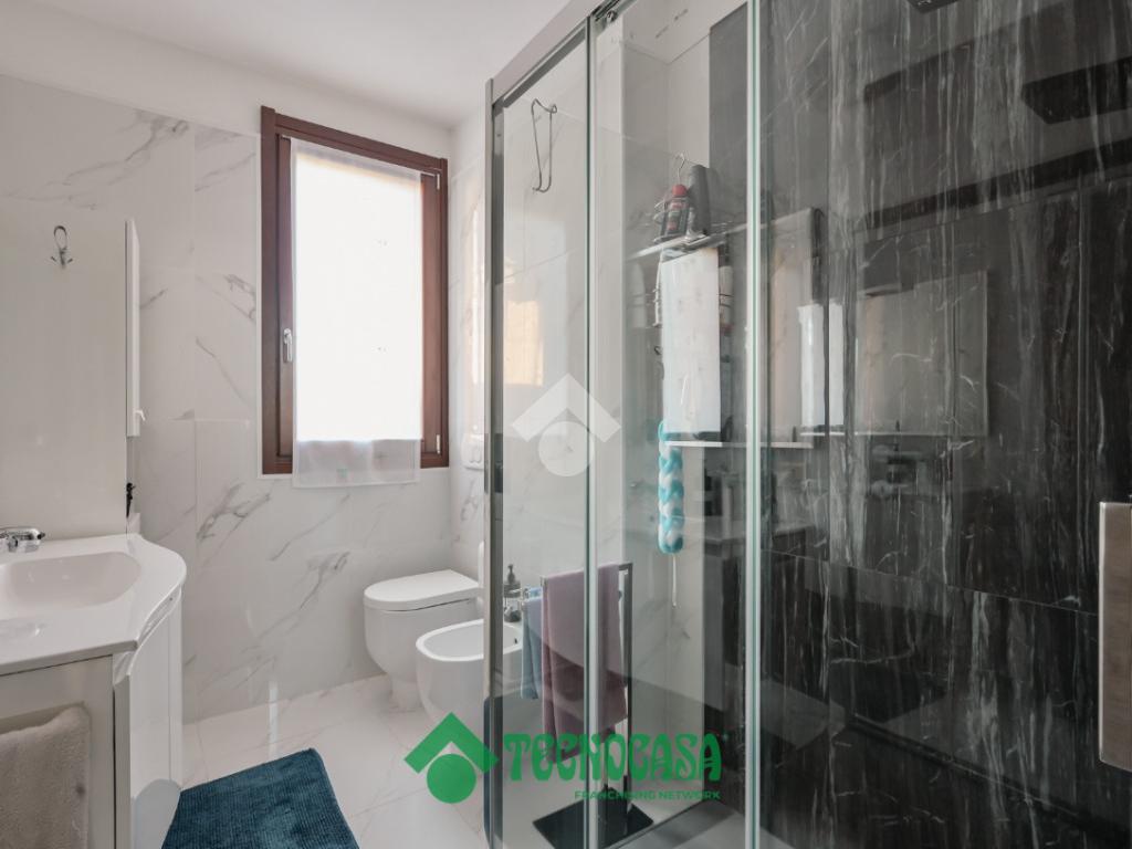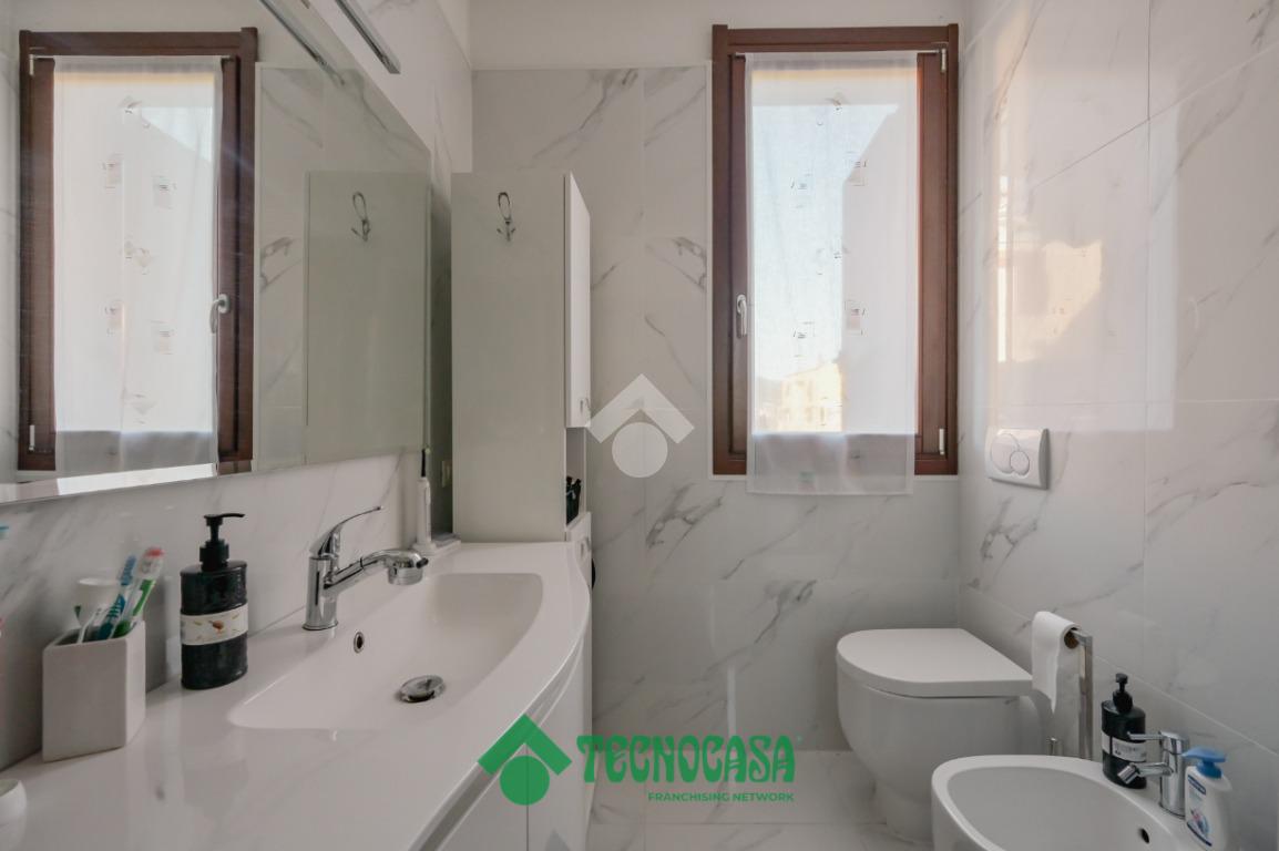 L’appartamento dispone di riscaldamento autonomo, due posti auto coperti sotto lo stabile e ascensore che collega comodamente il garage ai piani.