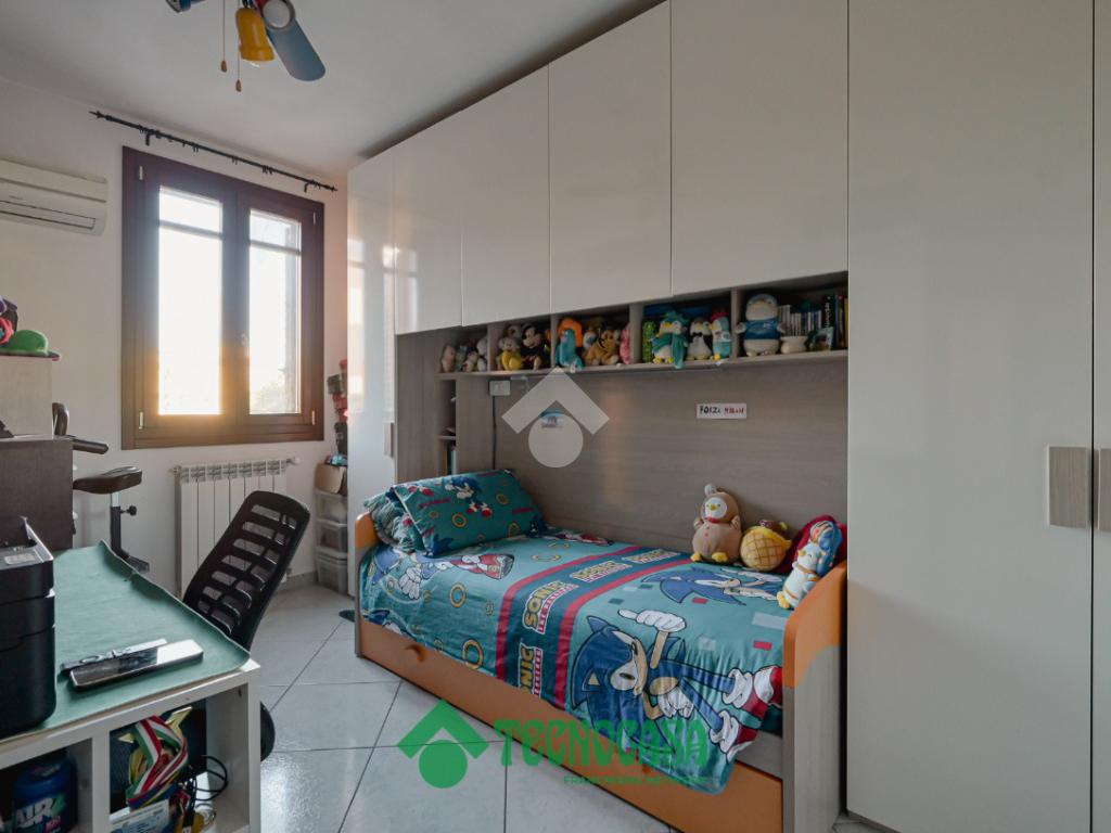 Un secondo disimpegno collega questa parte della casa alla seconda unità, dove troviamo una cucina più piccola, un comodo ripostiglio, una cameretta, una seconda camera matrimoniale, un bagno finestrato con doccia e un ampio soggiorno con secondo ingresso e accesso diretto al giardino.